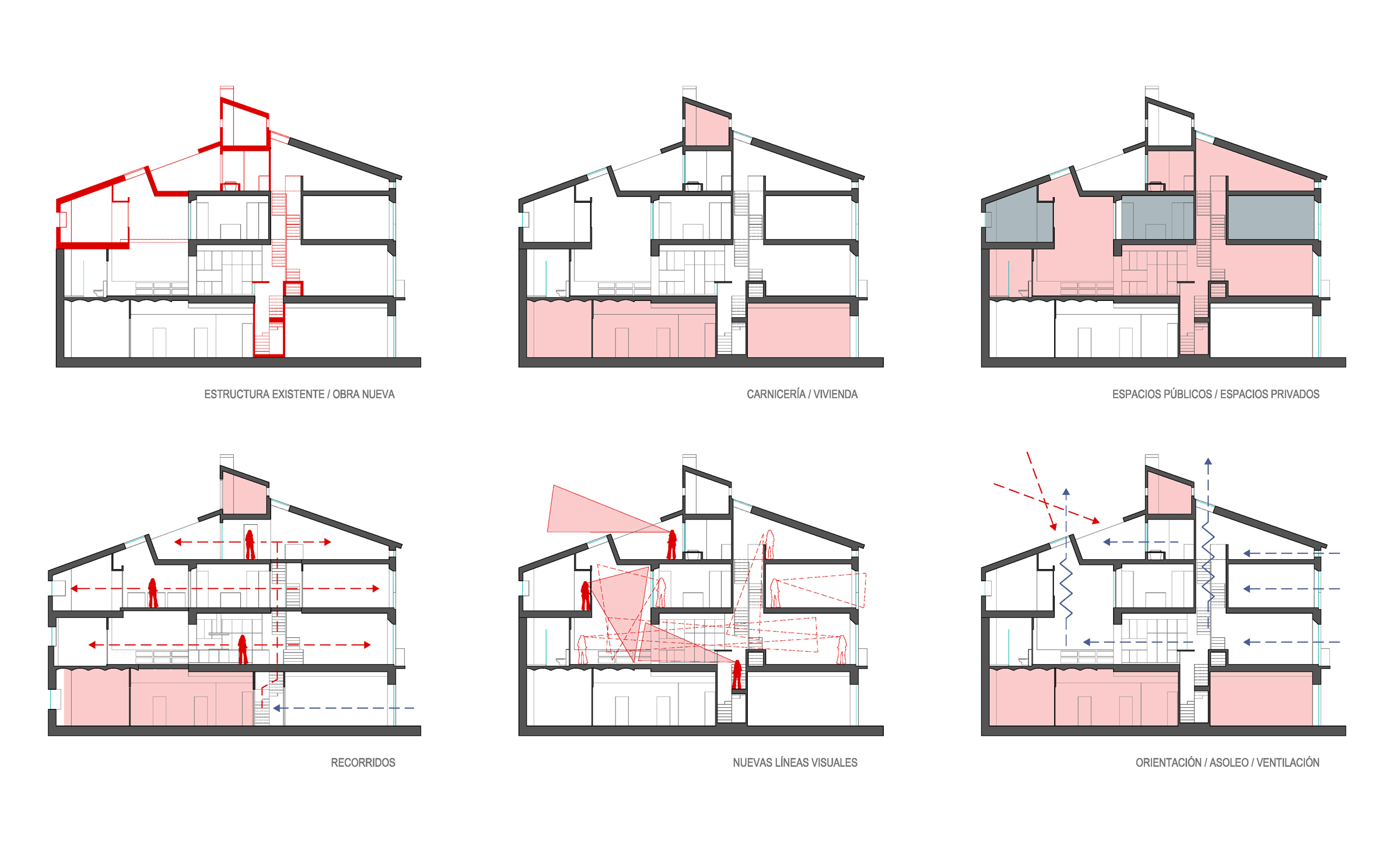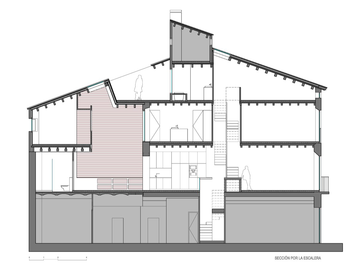 El proyecto intenta extraer el máximo rendimiento de la sección del edificio articulando volúmenes y vacíos, espacios de estar y espacios de circulación y provocando nuevas conexiones visuales antes inexistentes.