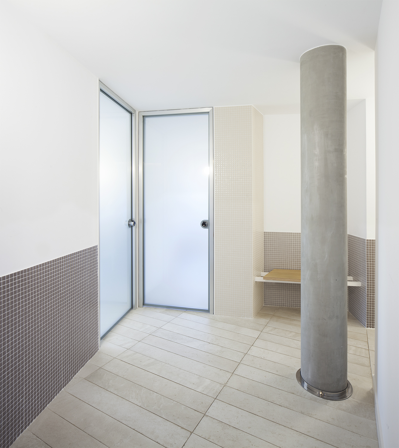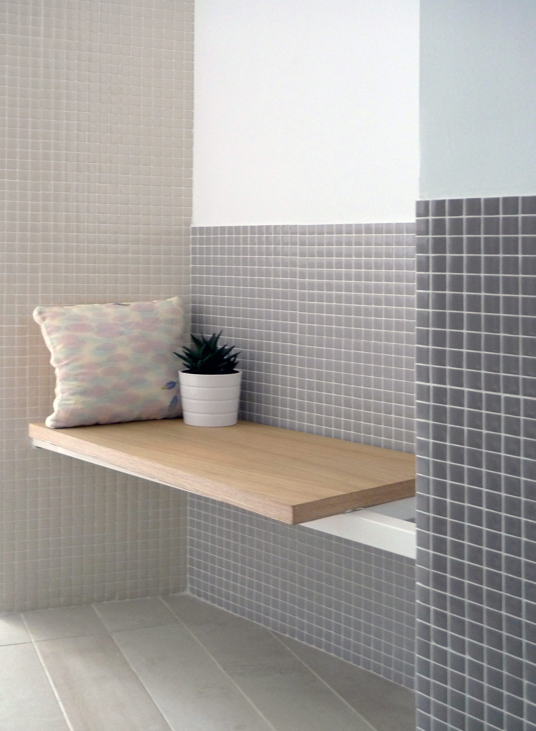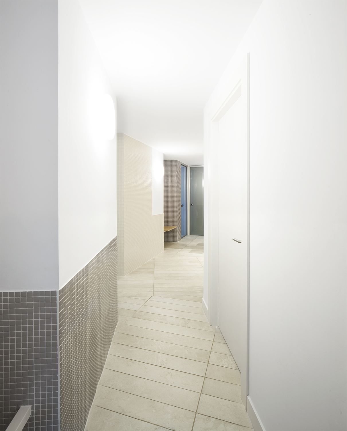 La escala de estos pequeños espacios y el uso de materiales normalmente asociados al mundo doméstico, como la madera o el mosaico, pretende dotar de calidez a las consultas y alejarlas del estereotipo de una clínica ginecológica como espacio clínico frío y aséptico.