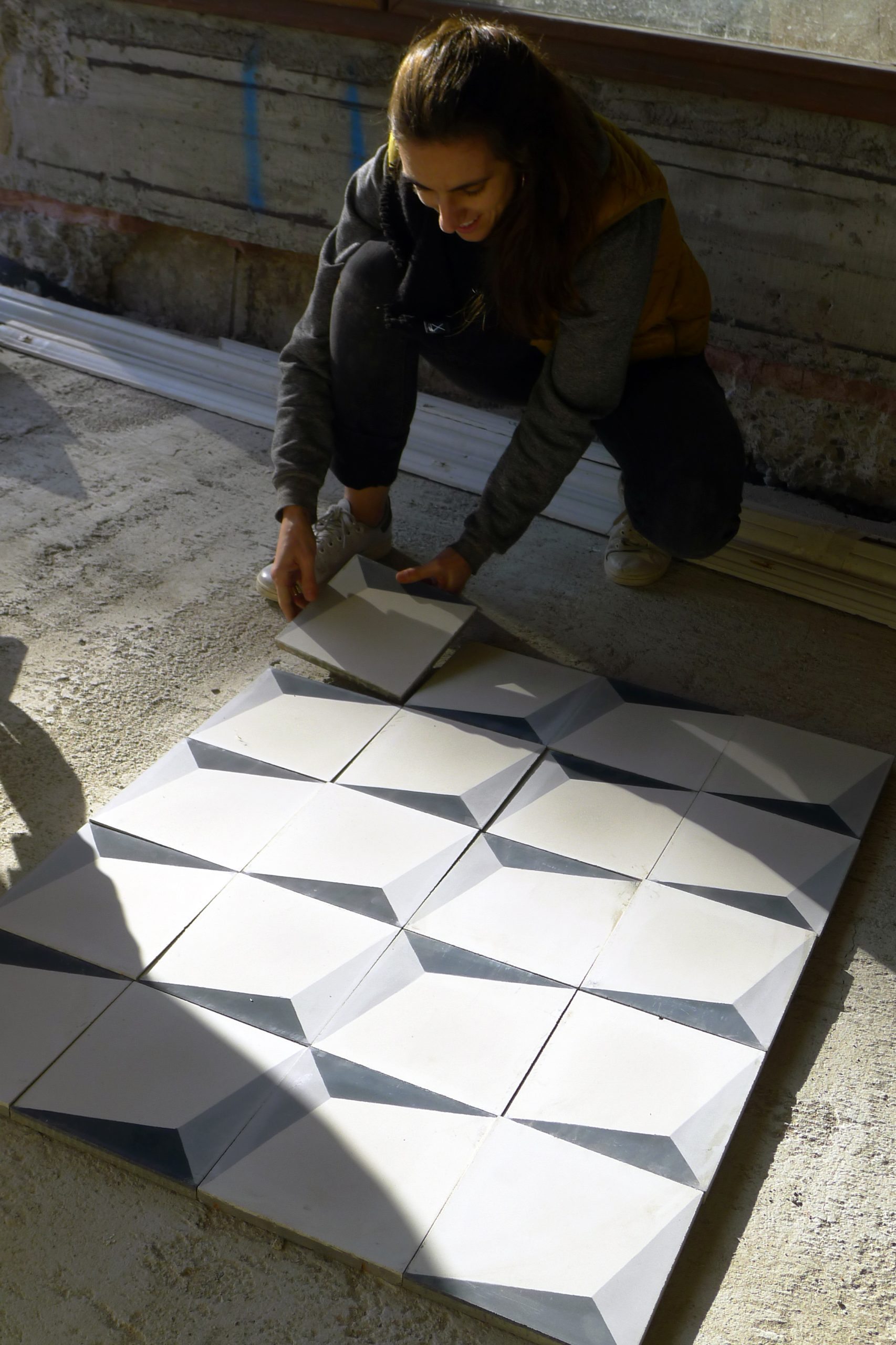 El proyecto de baldosa hidráulica HIRUKI trata de aportar una dimensión arquitectónica al suelo mediante la consecución de espacio y de movimiento a partir de la superficie del pavimento.