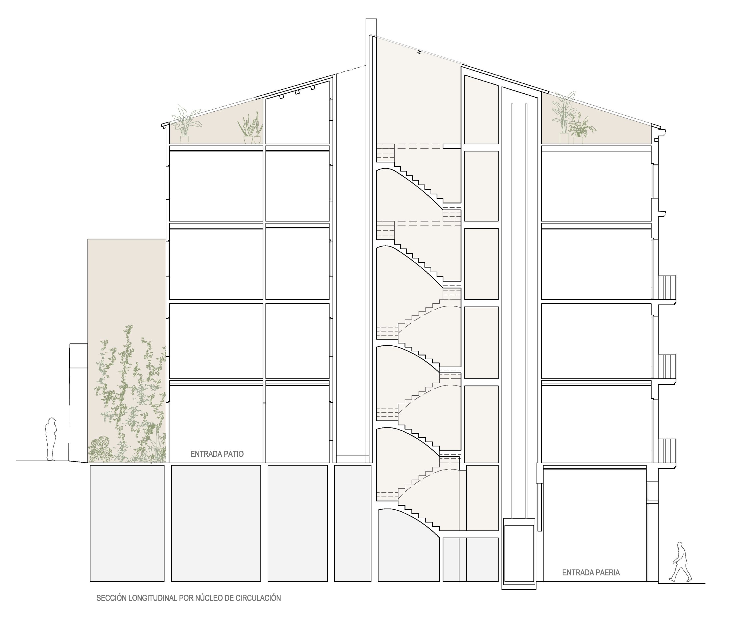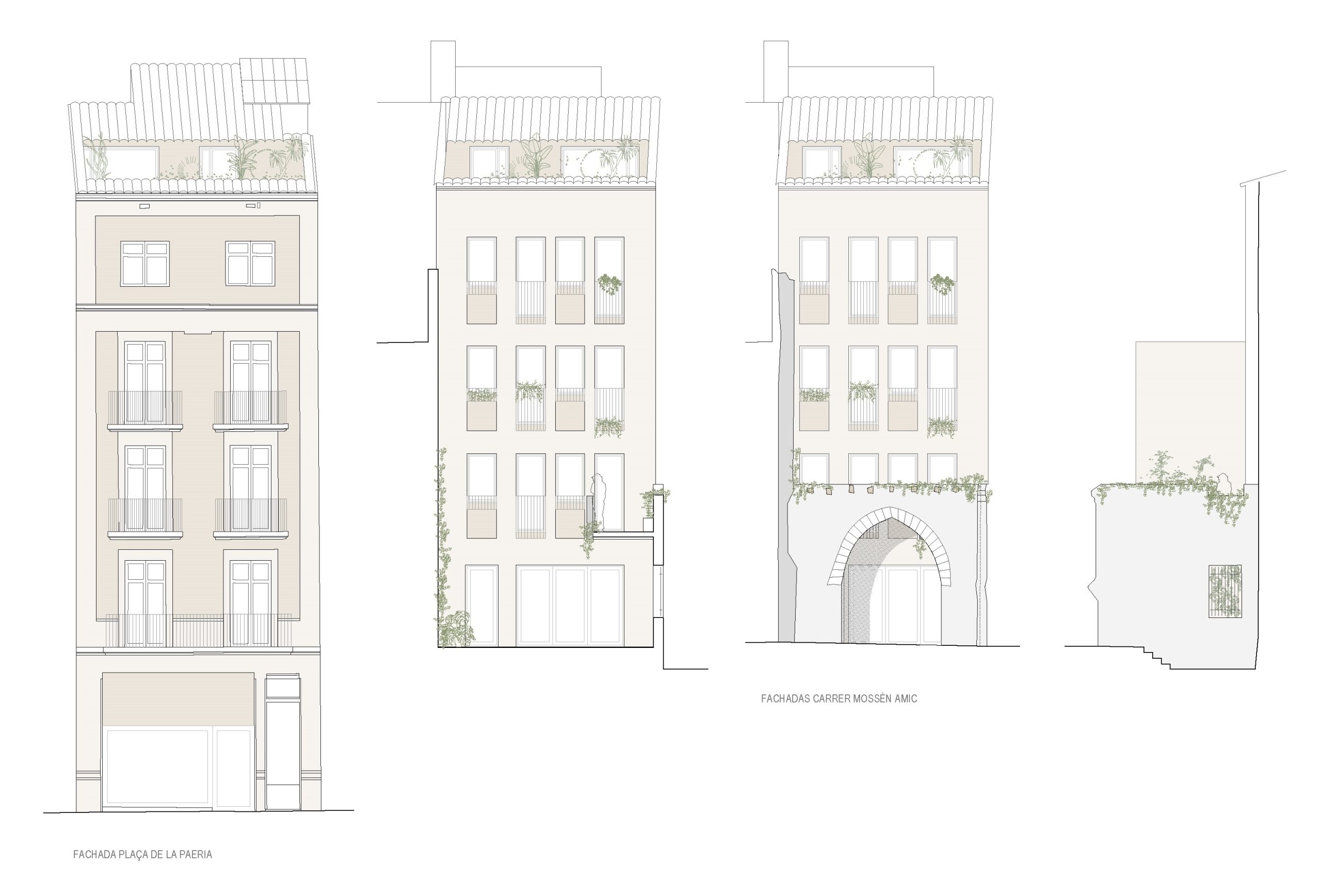 El proyecto de reforma integral de las plantas superiores, destinado a generar vivienda de calidad en el centro de Lleida debe resolver la accesibilidad y para ello propone la generación de un doble acceso a las viviendas. Mediante ascensor por la Plaça de la Paeria; y mediante escaleras desde el pasaje peatonal Mossèn Amic, recuperando el patio y convirtiéndolo en portal ajardinado al aire libre.