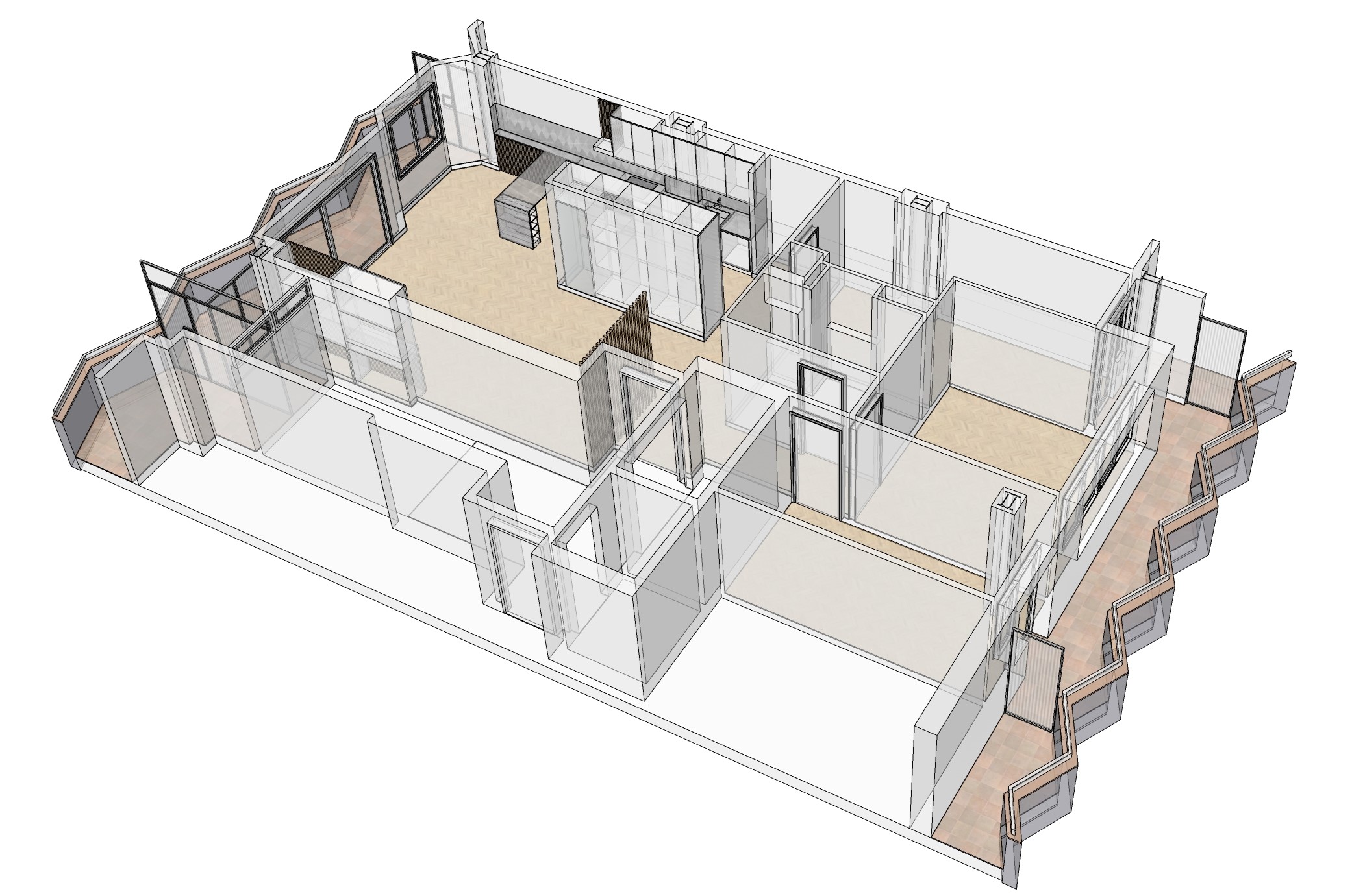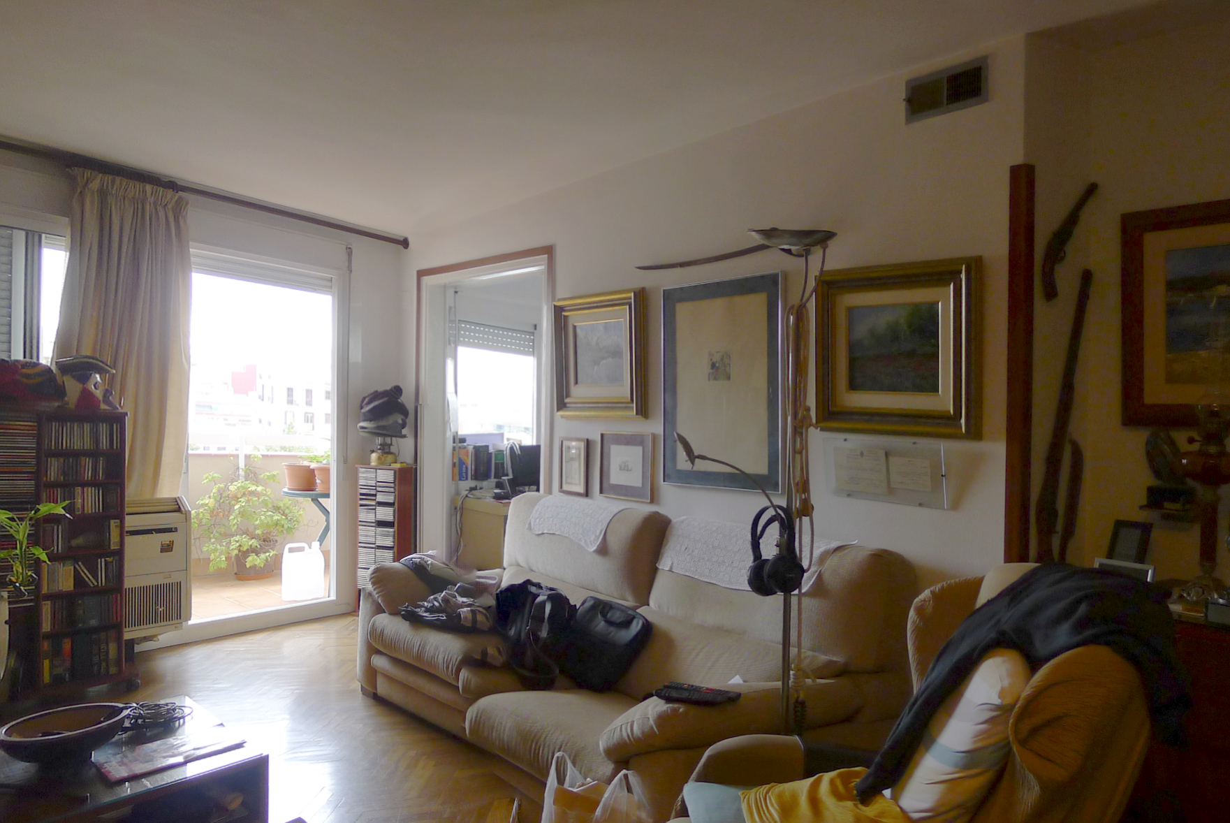La reforma de este piso para una familia invirtió parcialmente la distribución original para agrupar todas las habitaciones, y trasladar la cocina junto a la sala de estar en la zona más soleada. Este conjunto se articula alrededor de un bloque alto alrededor del cual se desarrollan todas las actividades.